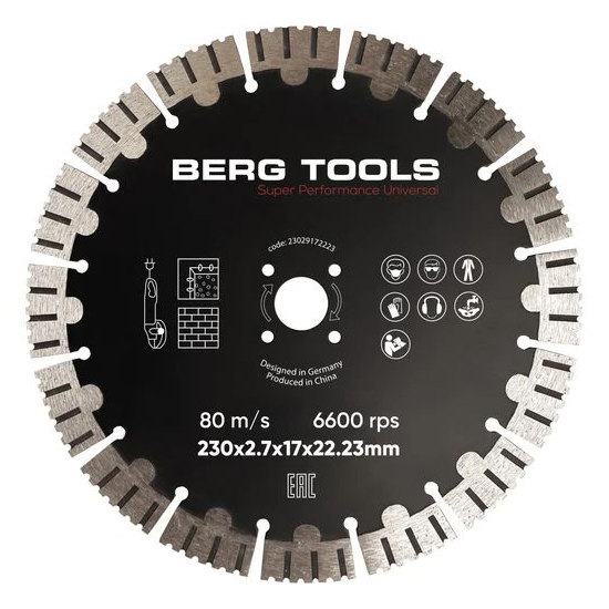 Алмазный диск по железобетону и камню BERG TOOLS 230х2.7х17х22.23