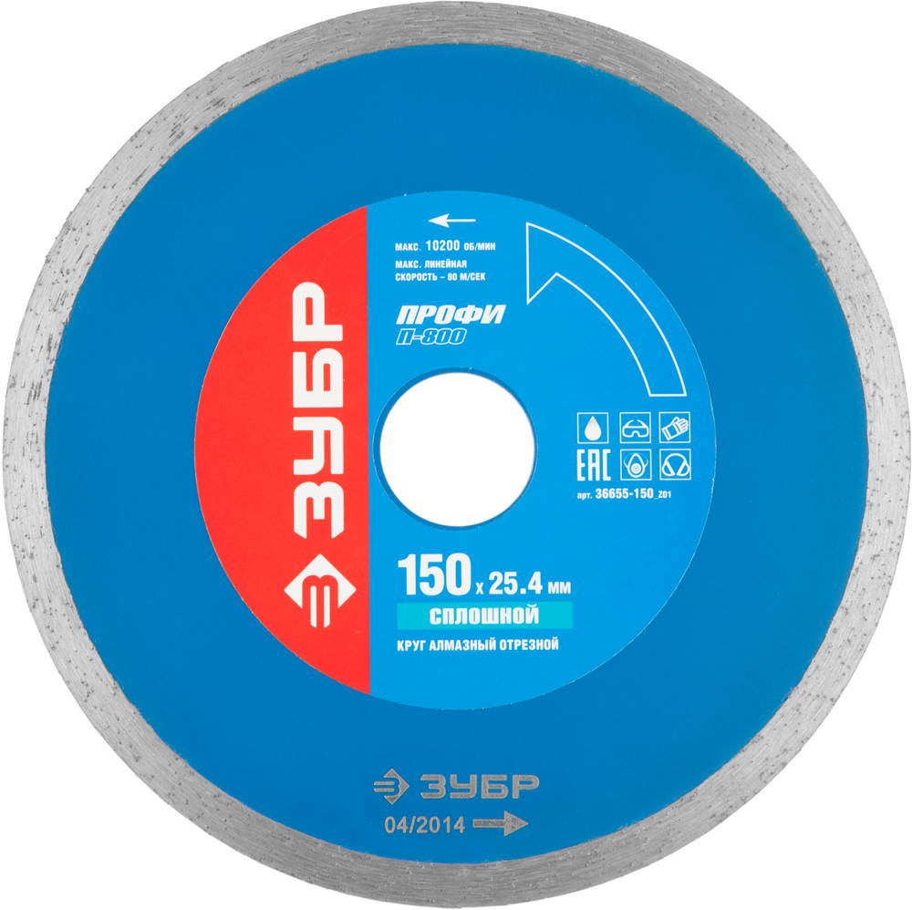 ЗУБР Т-800 Сплошной, 150 мм, (25.4мм, 7 х 2.0 мм), сплошной алмазный диск, Профессионал (36655-150)