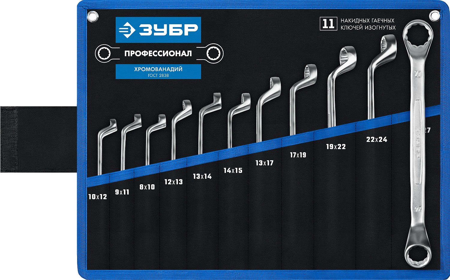 ЗУБР 11 шт, 8 — 27 мм, набор изогнутых накидных гаечных ключей, Профессионал (27132-H11)