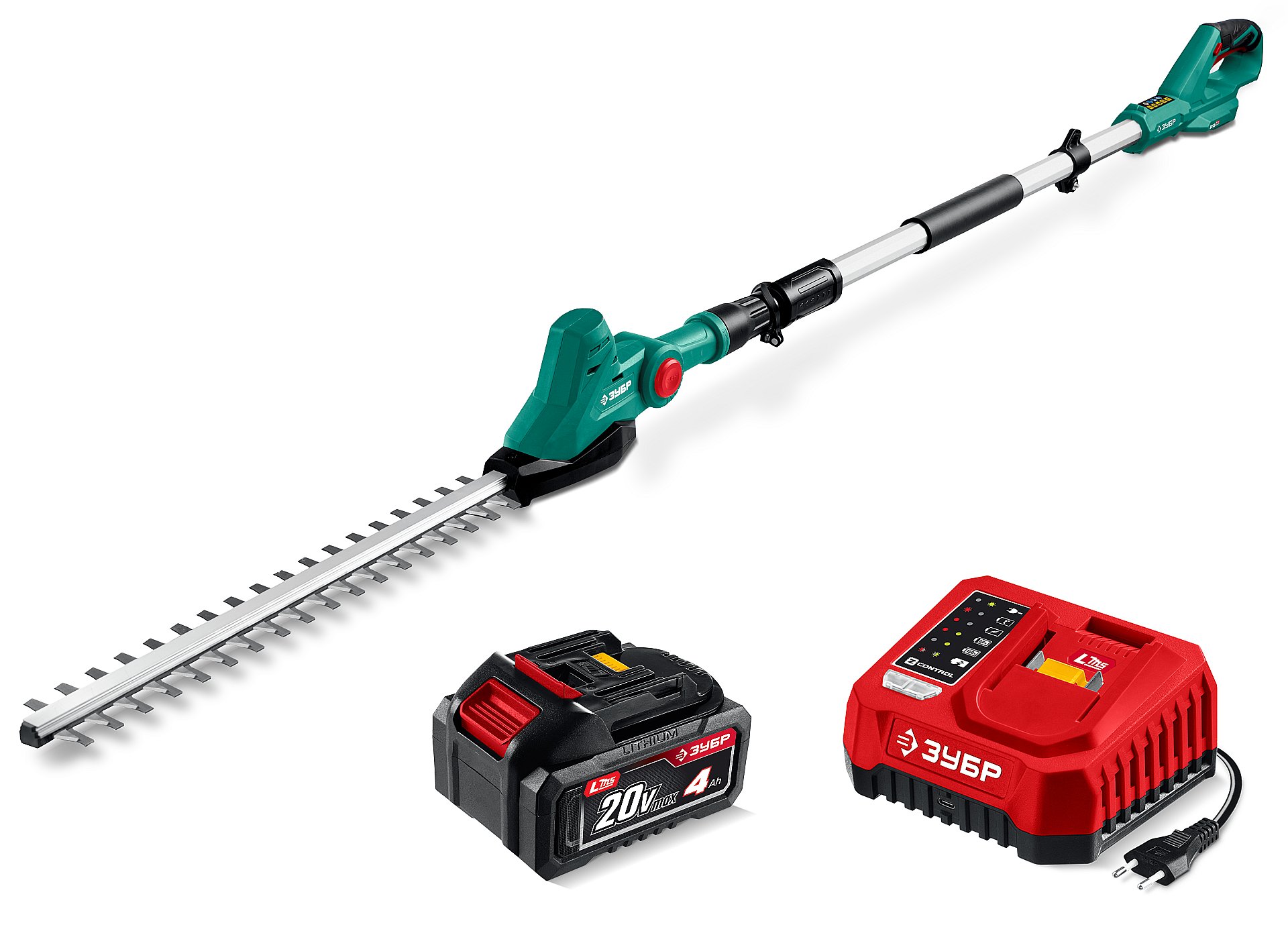 ЗУБР 20 В, 460 мм, 1 АКБ LMS (4 Ач), кусторез аккумуляторный со штангой (КРАШ-2046-41)