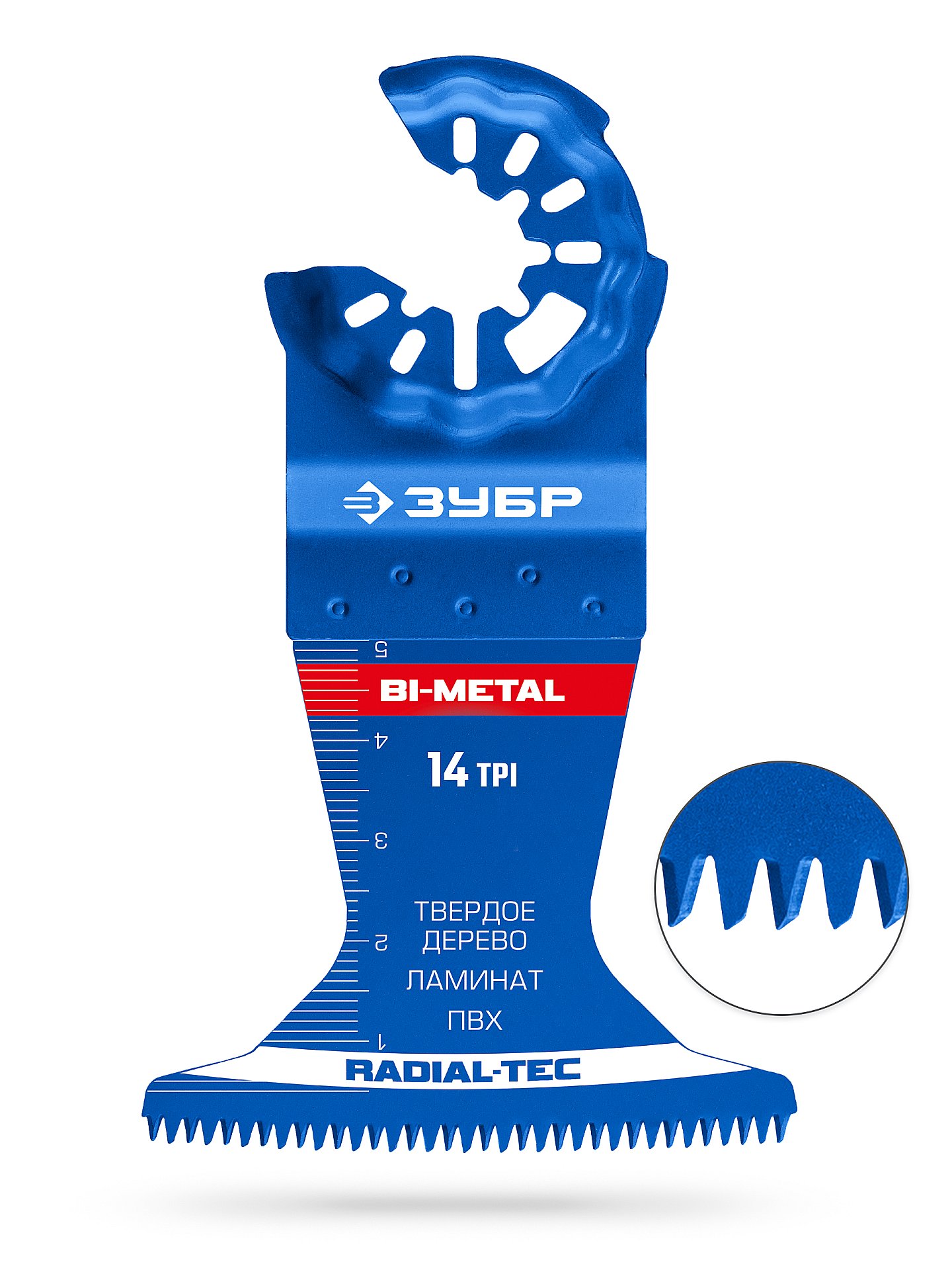 Тип хвостовика: StarQuick — быстросъемный универсальный. Применение по: Твердой древесине, ламинату и ПВХ. Материал полотна: Би-металл. Тип реза: Быстрый рез. Гарантия: нет. Тип упаковки: блистер двойной с вложенной карточкой. Тип заточки зубьев: Трёхсторонний, агрессивный. Шаг зуба, TPI: 14. Форма режущей кромки: Radial-Tec (закругленная).