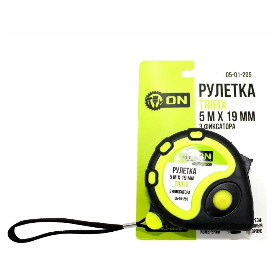 ON Рулетка TRIFIX 5м х 19мм, обрезиненный корпус, 3 фиксатора
